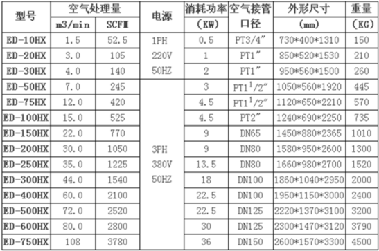 EA 吸附式干燥機(jī)之規(guī)格(可訂制特殊規(guī)格)